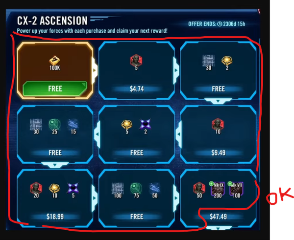 I bought the CX-2 Ascension Pack, which was supposed to unlock additional free tiers. After purchasing the final tier, the pack disappeared completely. Only the character shards were auto-claimed—the rest of the rewards weren’t, and I didn’t even get the chance to manually claim them before the pack vanished.