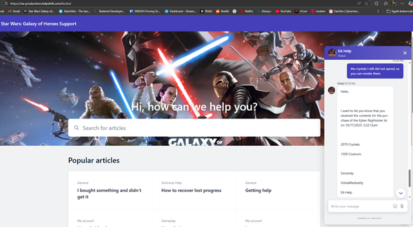 Reached out to EA Help, "VishalMedisetty" wanted to close my complaint with a confirmation, that I got the crystals, deal complete. So I said that's not how it works, this is fraud or false advertisement and I will take steps if they dont respond. Then they closed my complaint and pointed me to a closed thread. They supposedly forwarded my case to the devs.