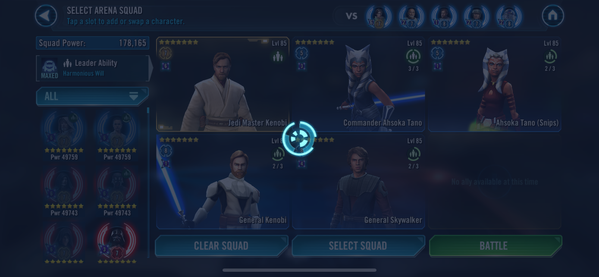 When I choose a battle in squad arena, my arena squad is preloaded and a loading bubble pops up and i’m locked out of any actions until I restart the game. It happens before I can clear or edit the squad.