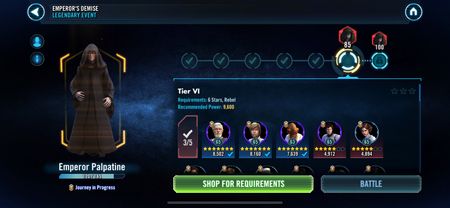 Missing 25 Shards for Emperor Palpatine after completing Emperor's Demise Tier V