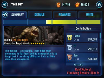 After the update tonight, at 6:30PM PST, my guild started a Tier 7 Rancor Raid. Late in phase 2, the raid showed as completed "Victory" but only half the guild had attacked, and before the update, th...