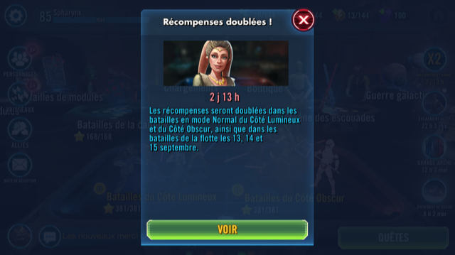 It is only working on normal light and dark side, not hard nodes (in french its specified)... BUT, if it is working as intended, the translation is wrong in french and says X2 drops in NORMAL light and dark side and in (nothing) fleet battles, without specifying if hard or normal, I spent my crystals for Shaak ti with few 0 shard tries and when it worked I had 3 shards (not bad rate for a 5 sims try but definitiely not doubles) I cheked in the fleet battle after that and effectively it s only in NORMAL fleet battles, so I used my crystals fro nothing... So please CG be careful with translation