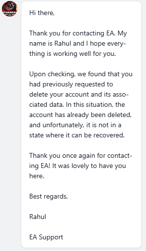 This is what you get when you try to recover your account—worst customer service ever. The account didn’t get deleted; it’s still in the guild with all its progress.