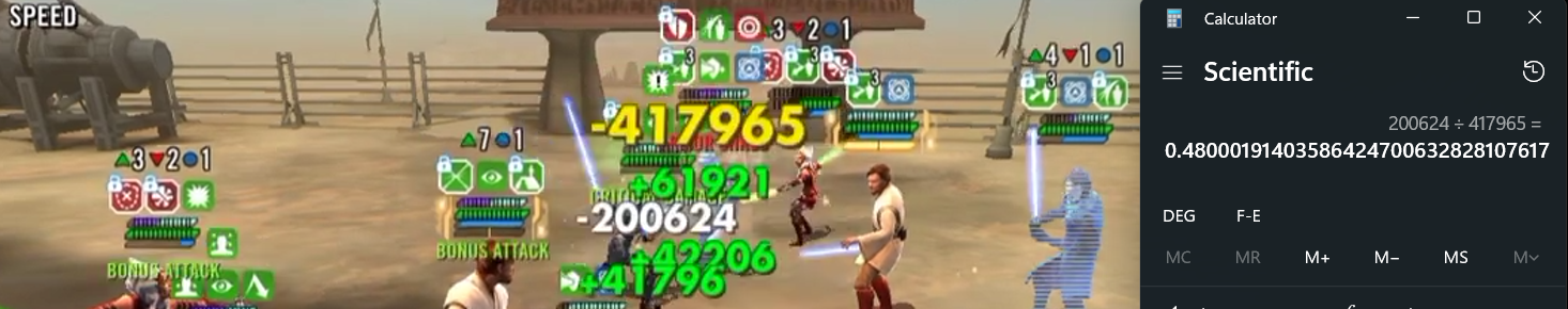 LS units take 20% reduced damage while Kenobi has the High Ground. So that part is correct: 0.6 x 0.8 = 0.48.