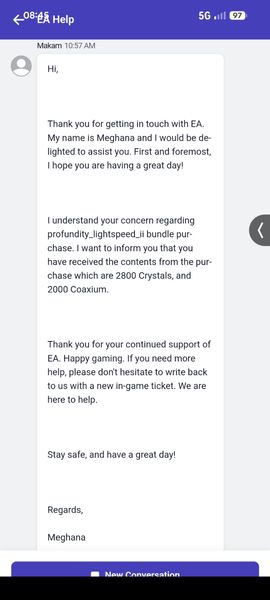 So, I just bought the Jedi Training Rey LSB, and did not received. Instead, got like 5k crystals, with an inbox that there was a problem, and I was compesated as best as I could. Now, when I go into the Shop, the LSB is not avaliable. How can I get the LSB I paid for?