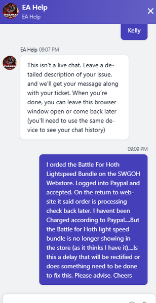 bump...LSB was only available another 4 days when It disappeared... Would like this sorted so I dont miss out. Does the EA bot way of opening a ticket even do anything?