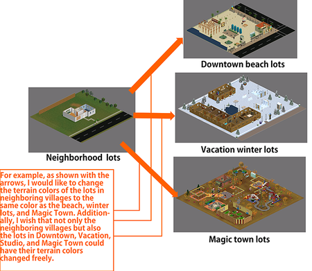 I have long wished to change the terrain color of the default neighborhood lots to a sandy shade like the beachfront lots in Downtown or a snowy shade like the winter lots in Vacation. However, the g...