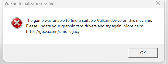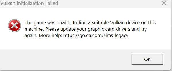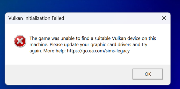 This thread is for Sims 1 crashing on launch after the February 4 patch.  If you're affected, please provide the a dxdiag, a vulkaninfo report, and an EA App error report ID.  Please also post a screenshot of any error message you see, or note that you don't see an error.  See below.