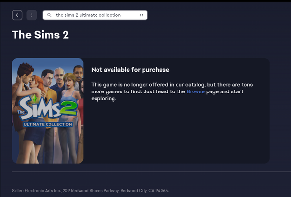 The Sims 2 Ultimate Collection has gone missing from EA App Library