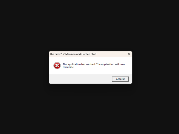 I installed The Sims 2 Ultimate Collection and when I start the game this prompt appears, and the game shuts down. I can't get into the game whatsoever. Already tried some solutions mentioned in older threads (deleted Accessory.cache file, there was no Groups.cache file) but they haven't worked. Is anyone else having this problem? I have Windows 11.