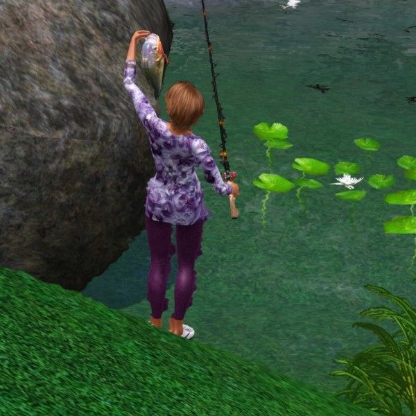 The last week of the Summer was a fishing grind ... Most days were spent catching either bait, food or fertilizer to stockpile. Kathy managed to max out her Self-Employed Angler Career, completing the career requirement of the Challenge in the first season. She wouldn't have been able to do so if she hadn't stocked a pond in the park near her lot with Deathfish.