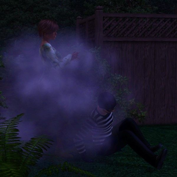 Later that evening ... She got busted by Keisha Wyatt while trying to tag the Greenwire Java Hut and Internet Cafe. Keisha drove her home, and fined Kathy 1000 simoleons. Kathy chose not to explain the fact she owns the Greenwire and should be able to paint it if she wants to.