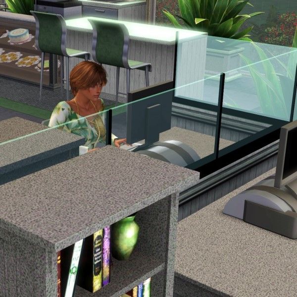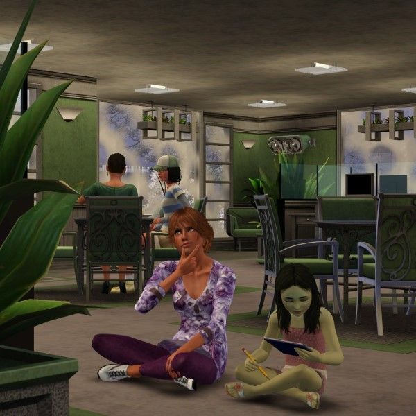 Kathy advanced her Writing skills and wrote a Romance Novel that will bring in an additional 2452 simoleons a week in royalties. She did so using the computers at the GreenWire Java Hut and Internet Cafe. It was also a great place for meeting folks and having a little fun.