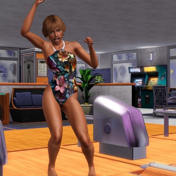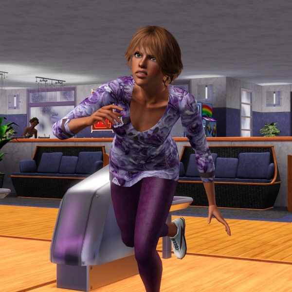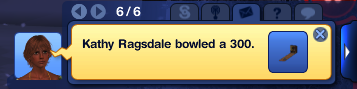 She did take a few breaks for fun during the week when time allowed ... And yes, Kathy did bowl a perfect game wearing swimwear ... She had just earned the Daredevil Trait by gaining enough jock Influence ...😆😂