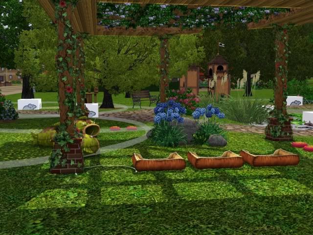 Also note there are 9 "placeholder" community lots (less in ST version) that are tagged as "no visitors allowed" that you can use for future EPs. The lots are filled with trees to blend in with the rest of the scenery, but the game still consideres them as empty. So to place a lot from the bin,in one of those lots, you'll need to first enter the lot in buy mode (edit town) and delete the trees first, and then place the lot from the bin. Directly placing a lot from the bin without removing the trees, might cause the map tags to dissapear. Bouldosing the trees through edit town will delete the lot entirely as the game considers it as empty.