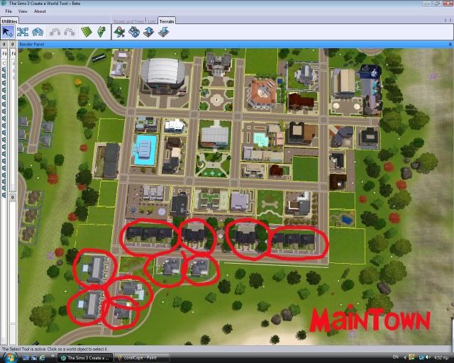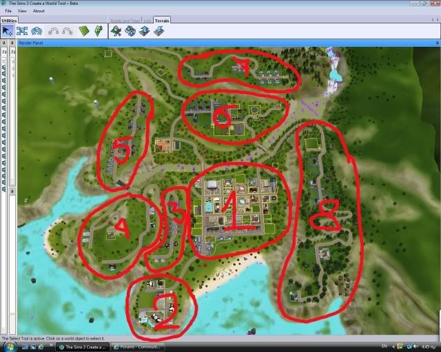 Also note there are 9 "placeholder" community lots (less in ST version) that are tagged as "no visitors allowed" that you can use for future EPs. The lots are filled with trees to blend in with the rest of the scenery, but the game still consideres them as empty. So to place a lot from the bin,in one of those lots, you'll need to first enter the lot in buy mode (edit town) and delete the trees first, and then place the lot from the bin. Directly placing a lot from the bin without removing the trees, might cause the map tags to dissapear. Bouldosing the trees through edit town will delete the lot entirely as the game considers it as empty.