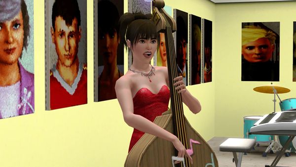 Her lifetime wish is One Sim Band. She is currently at level 7 in guitar and piano, and level 6 in bass and drums.