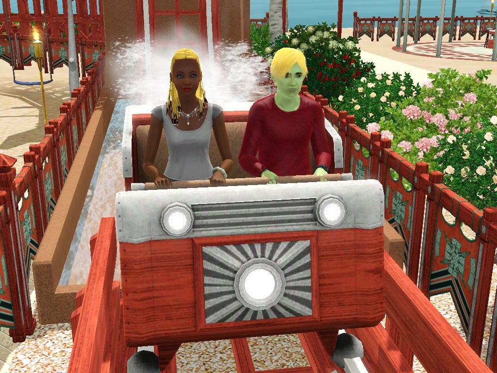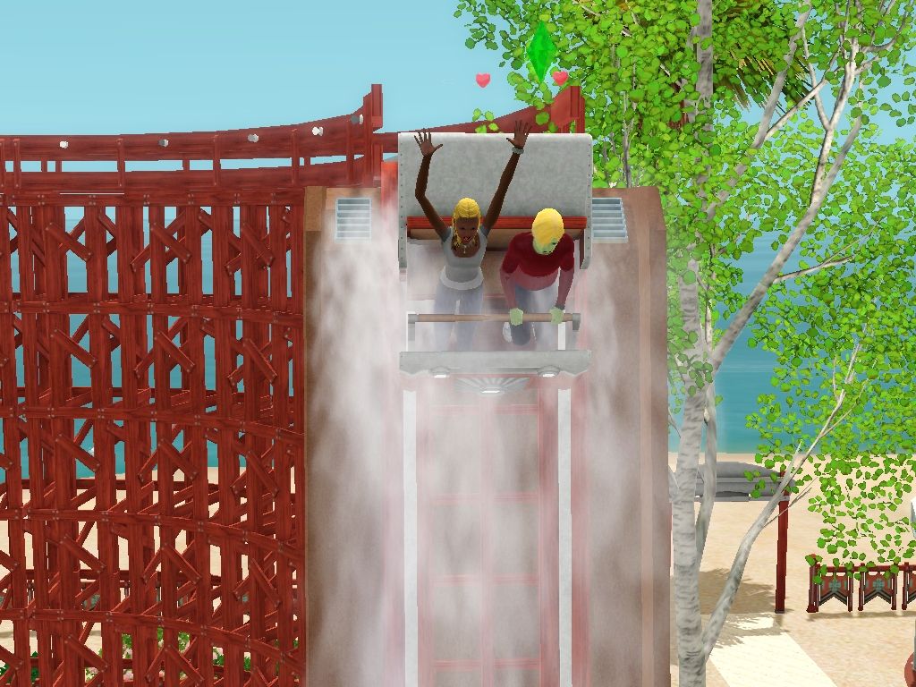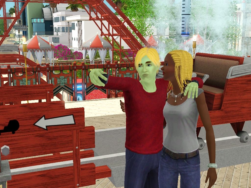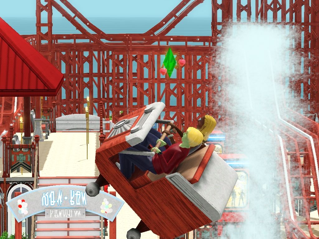 34 - Page 15: Pictures by catloverplayer of his Sim family having fun in another spooky roller coaster.