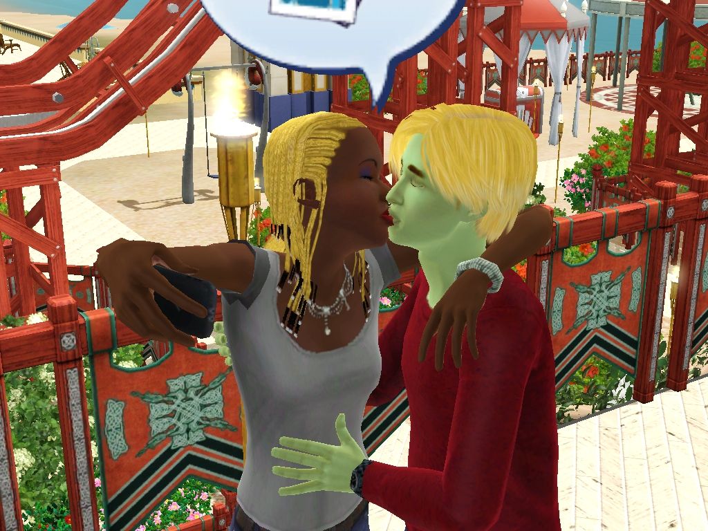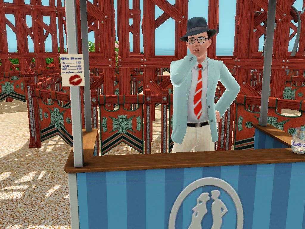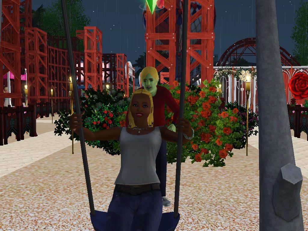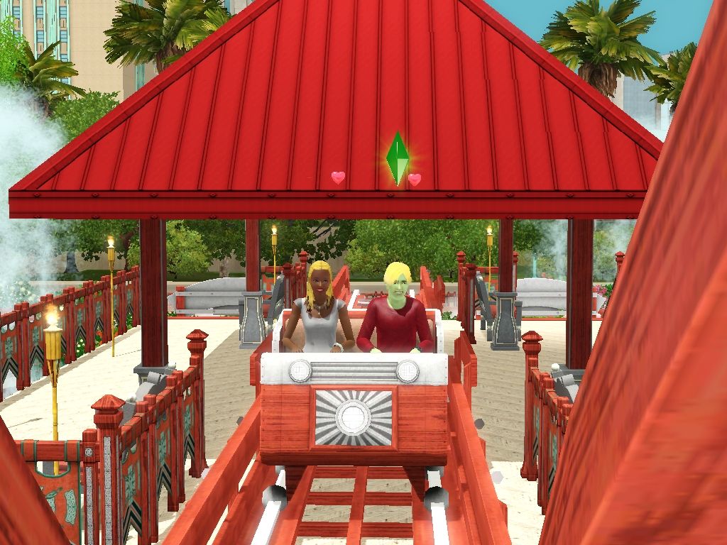 34 - Page 15: Pictures by catloverplayer of his Sim family having fun in another spooky roller coaster.