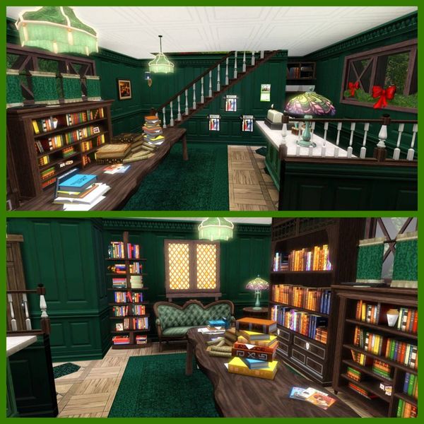 The Bookstore is lovely! 🙂 You have reflected your inspiration very well! It looks very pretty 💗The garlands and bows are very nice. Very lovely interior furnishing! The green colour is very nice. The reading areas are lovely. It looks a very nice warm and welcoming place to buy books and enjoy reading.