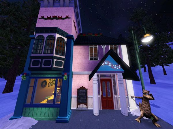 The Lounge is lovely! 🙂You have reflected the inspiration building very well! The exterior design and the windows are great.The music area is lovely and it looks very nice that sims can look through the front window and see the musicians playing, which would encourage them to come and enjoy listening to the music also. The dining and upstairs sitting areas are lovely.