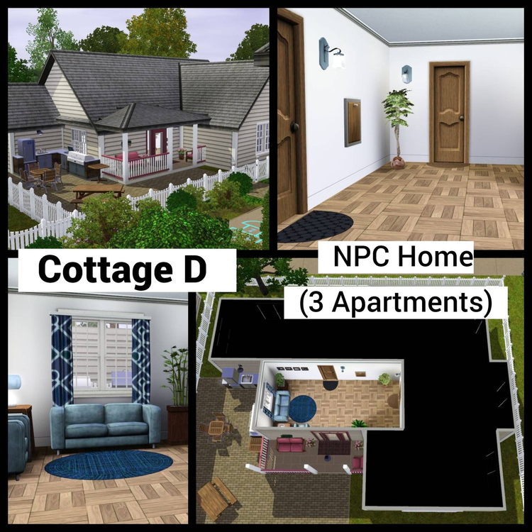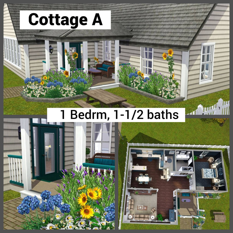 Cottages: Two homes are completely furnished and ready for your sim(s) to move in. The choices are a 2 bedroom/2 bath or a 1 bedroom/1-½ bath. (See the notes section below regarding move-in.)