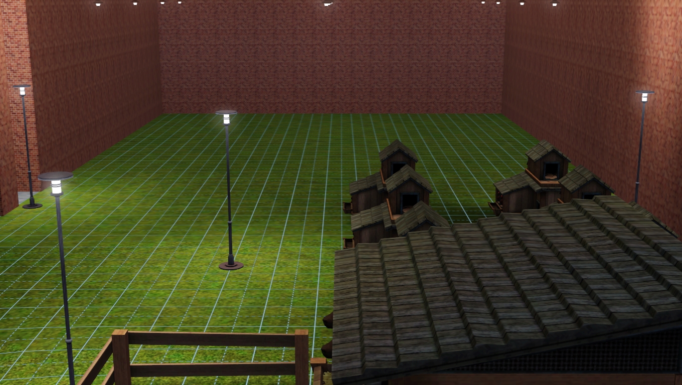 The second level will be living quarters for all my sims; plus a large kitchen with plenty of cooking space. My sims have to eat, after all...as well as a skills library with all the cooking books (so that sims can learn the recipes) and all the skill books.