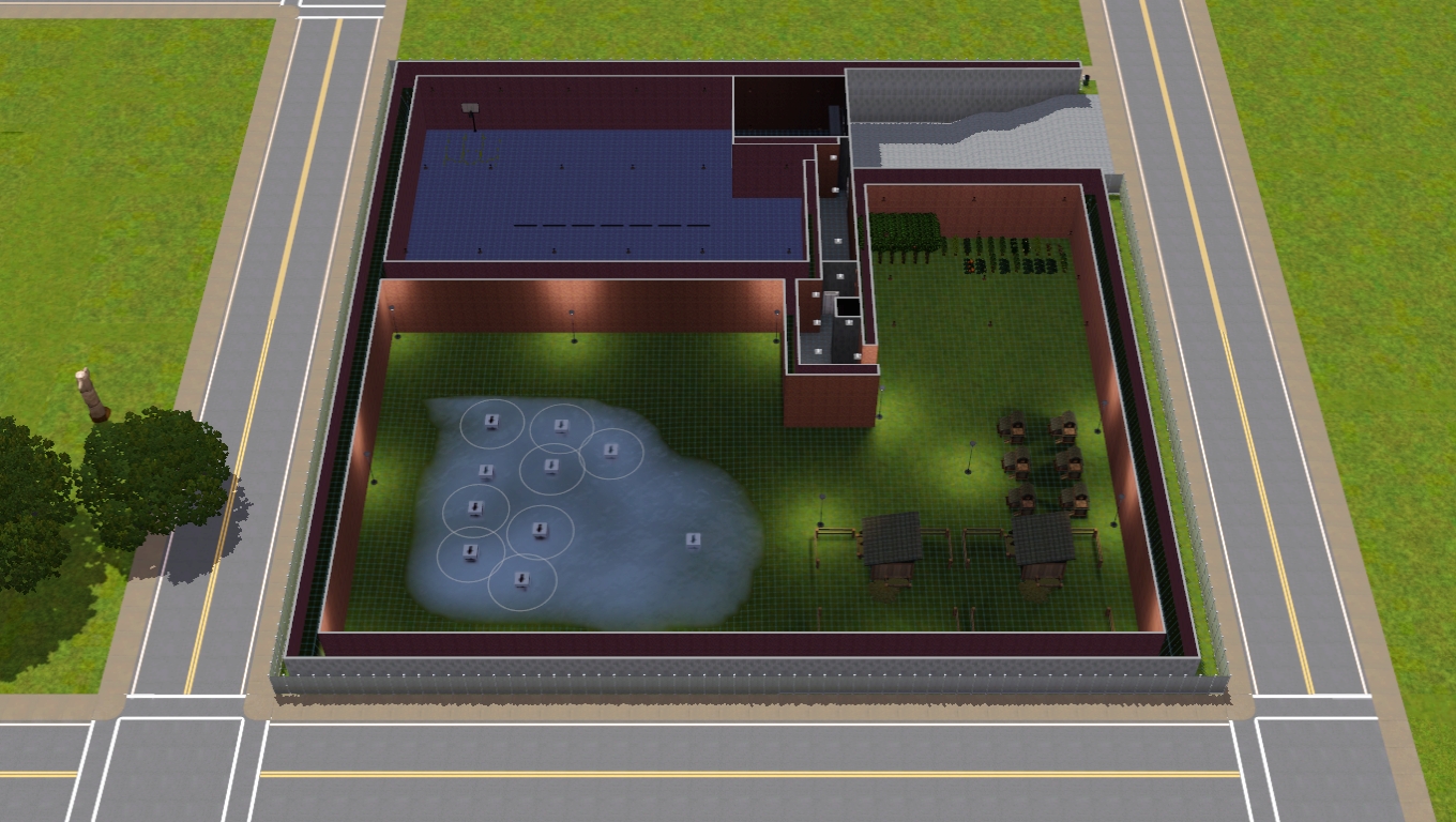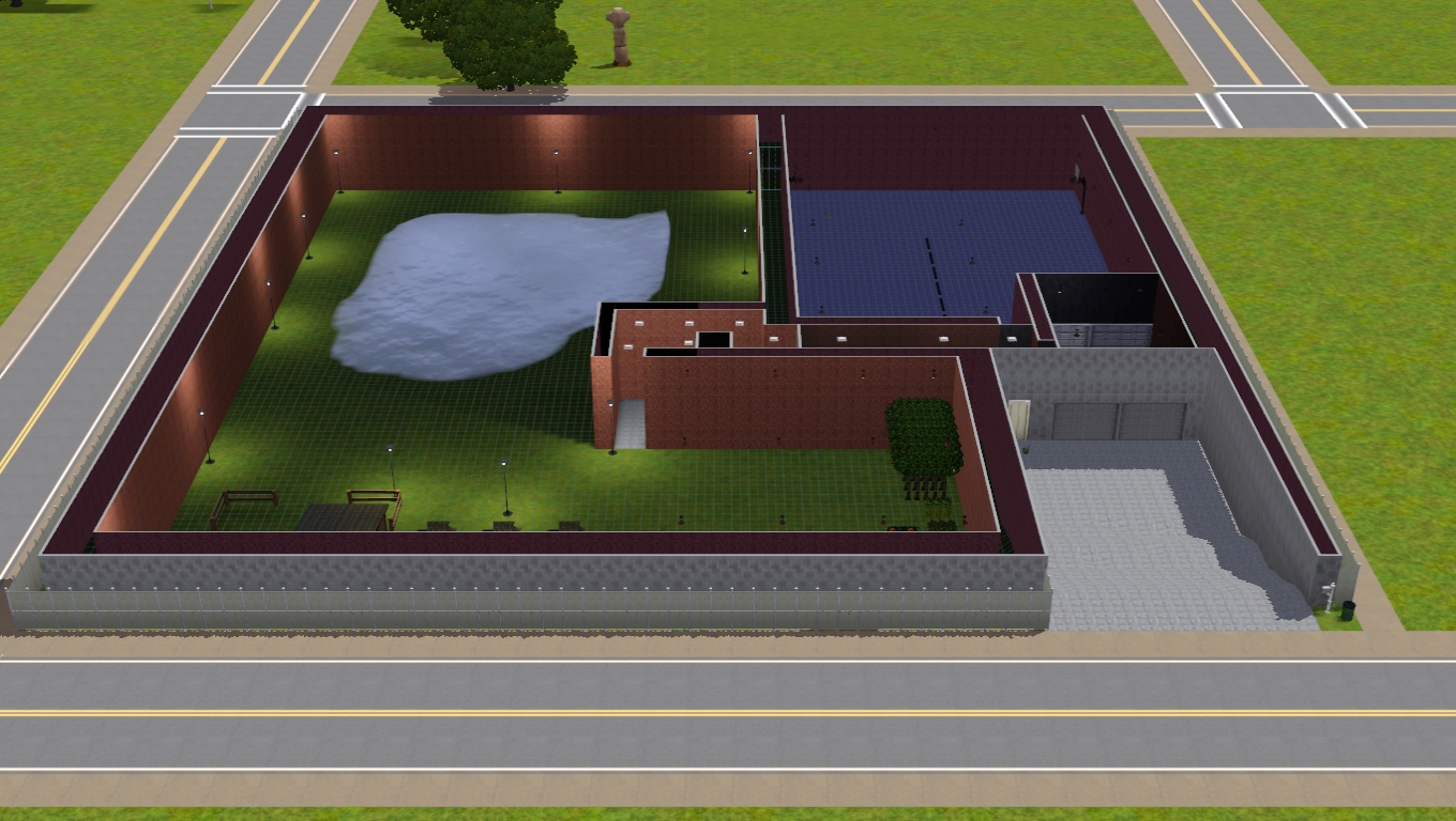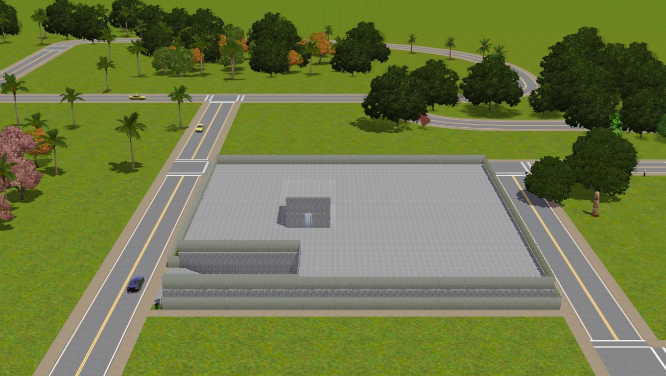 This bunker will encapsulate a whole 64x64 lot. There will be a driveway on the other side of the bunker in order to keep the driveway and entrance hidden from view.
