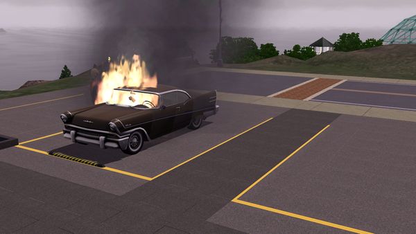 I don't think it was mechanical problems with the car. 😛 I did read that if you have Seasons installed it will cause random combustion of objects like bushes and trees and indoor objects as well like a newspaper bursting into flames...I got this from Mod The Sims forum.. it's interesting.