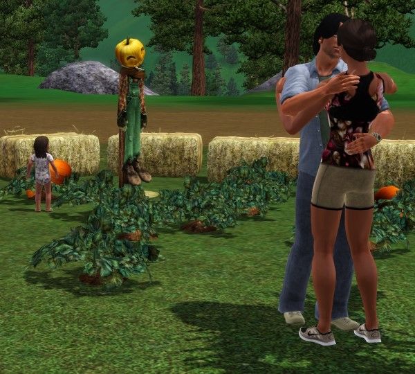 Kris and Rebecca take advantage of little Hanna being distracted in the Pumpkin Patch while at the Fall Festival ... "Why they call it a scarecrow mommy ... It's not scary?"