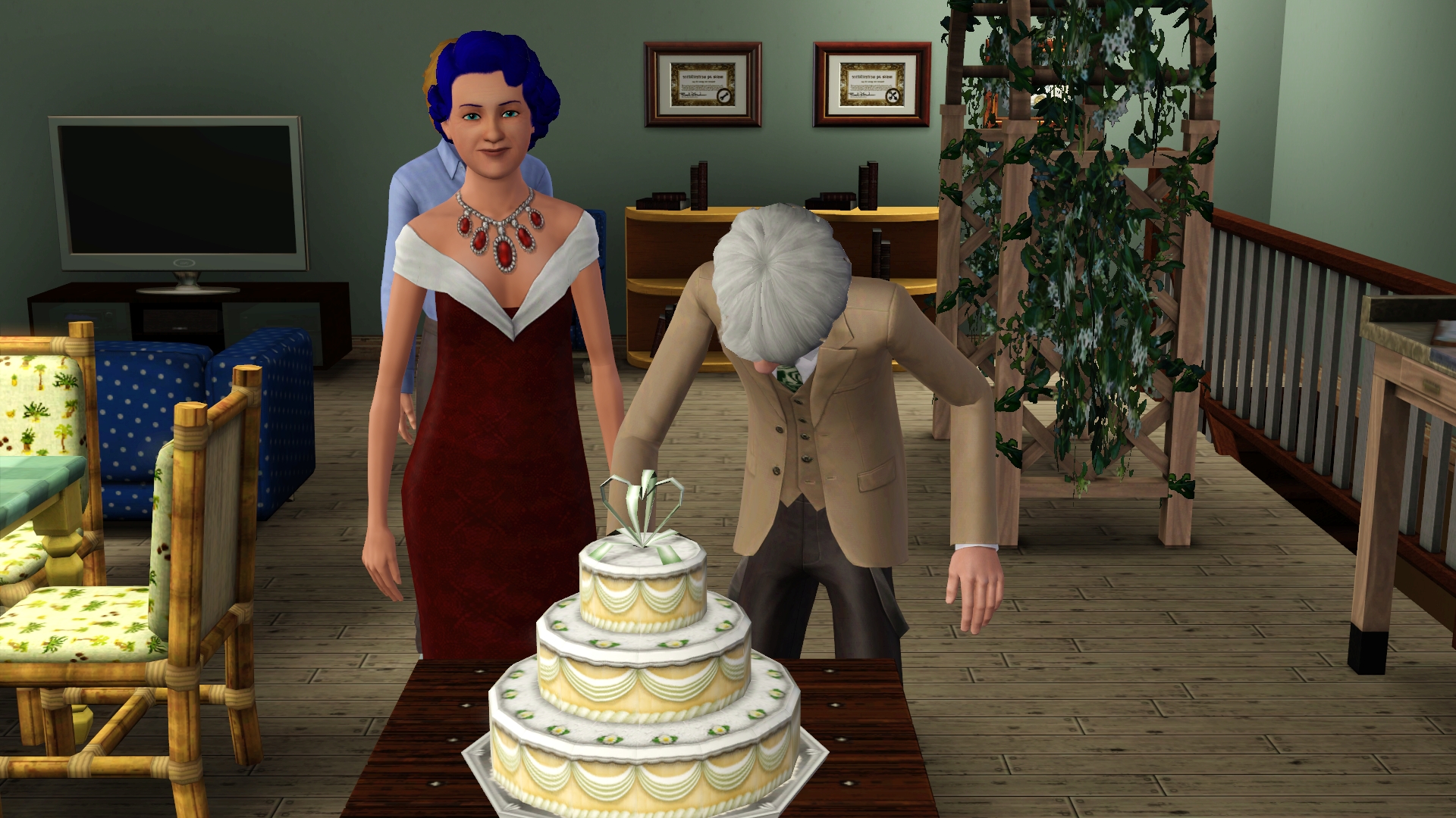 Teri and Daniel will be aging up to young adults this afternoon game-time. I'm not sure if they will get pregnant right away, or wait until I am able to place a grocery store. Teri is almost level 8 in gardening and Daniel just reached level 8 in fishing.