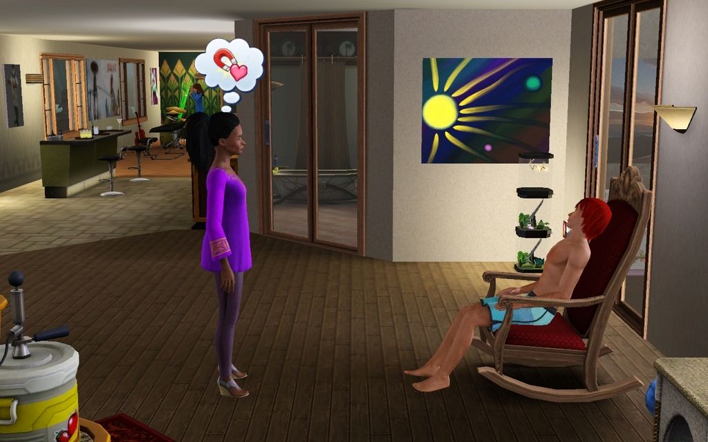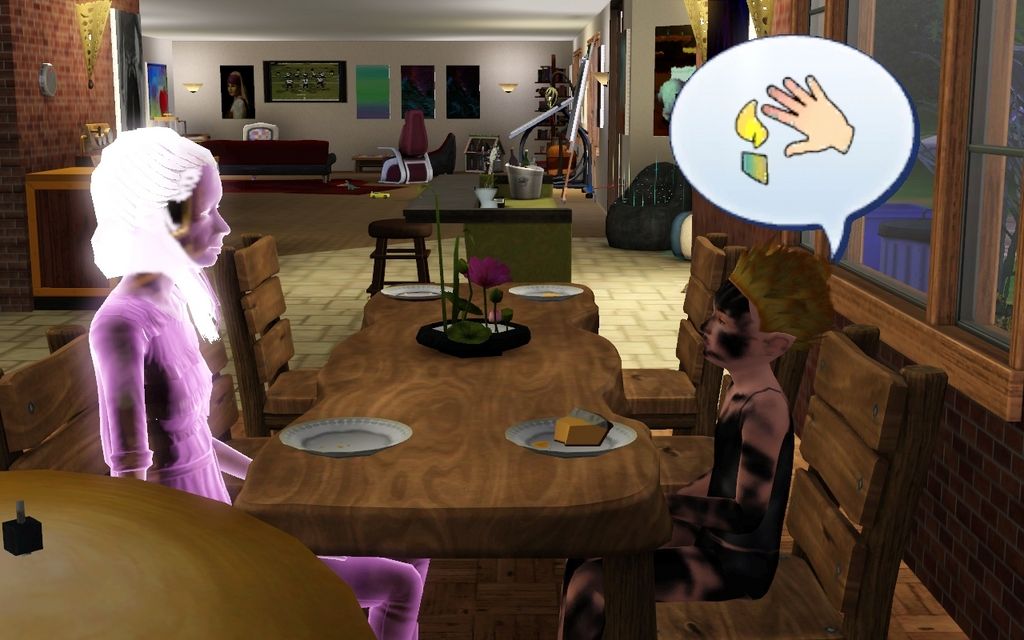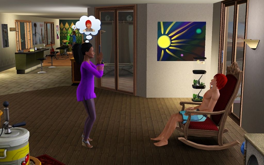 I am fascinated with Sims 3 thought bubbles. I like to watch them as sims interact with each other to get a better understanding of what they are thinking or what motivates them. I also like to watch and compare what sleeping couples are thinking about.