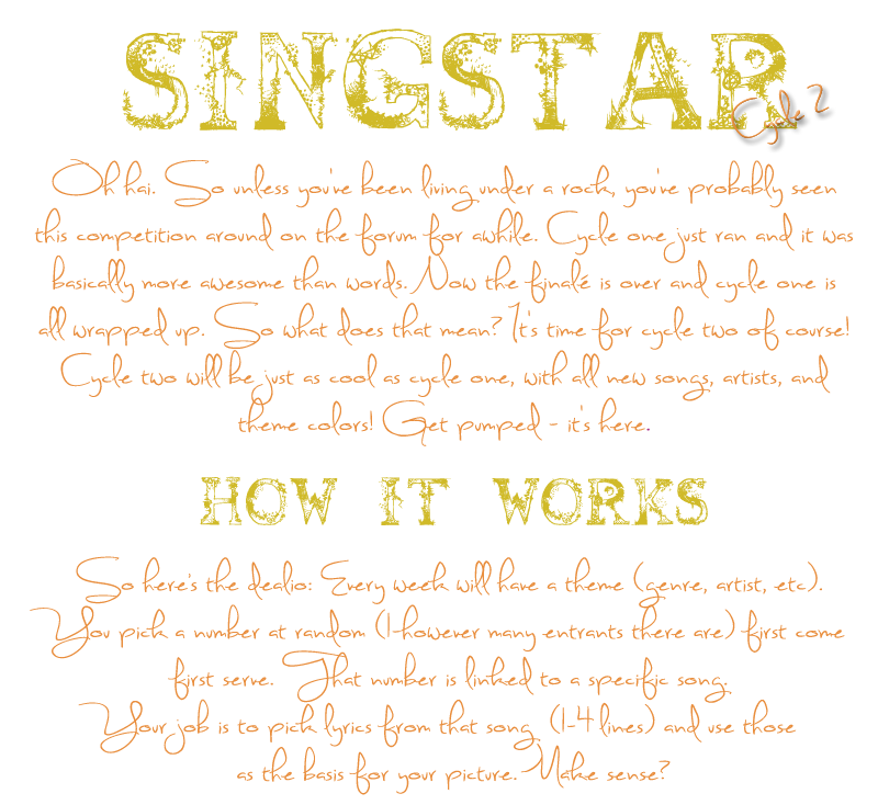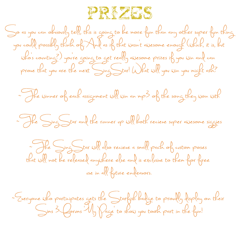 Because of the time its taken to finish this, I'm not going to make you wait even longer for the original prizes that were promised on the front page. Instead, since you were all troopers and stuck it out together, you'll all get the same prize package - the only difference being your signature banners. I know it's not 100% fair to the actual winner, but it's been months - I feel you all deserve the prizes.