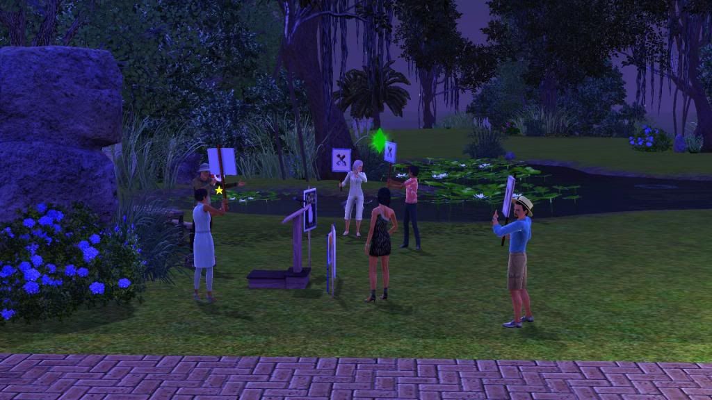 Screenshots of the sims and world are not required but are welcome because this lets others see their sims as well as what the world looks like in case anyone else would like to download and try it out. If you do post pictures we usually try to limit ourselves to vignettes, which could be as few as 1 or 2 screenshots and on occasion could be up to 6-8 screenshots in one post, although it's no big deal if you go over that. There is no requirement for how often you need to post about your games or anything like that either; some of our members get busy IRL for awhile but may return later. So play and share whenever you have the time, but do try to stay on-topic as much as possible so that our thread doesn't get deleted. :-)