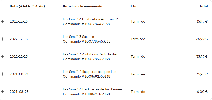 - les deux extensions ont été achetées ensemble (sur EA App) et leur transaction à été corrompue, pour Dieu sait quelle raison, après plusieurs années sans aucun problème.