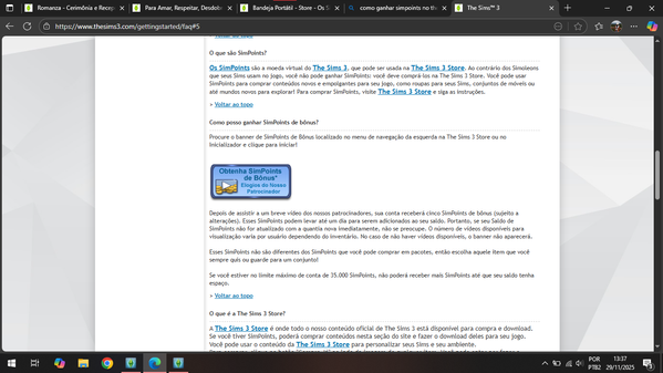 No site The Sims™ 3, nas perguntas frequentes, tem uma opção a respeito de simpoints gratuitos a partir de vídeos de anunciantes. Porém, não localizei onde estão essa área para ver os vídeos.