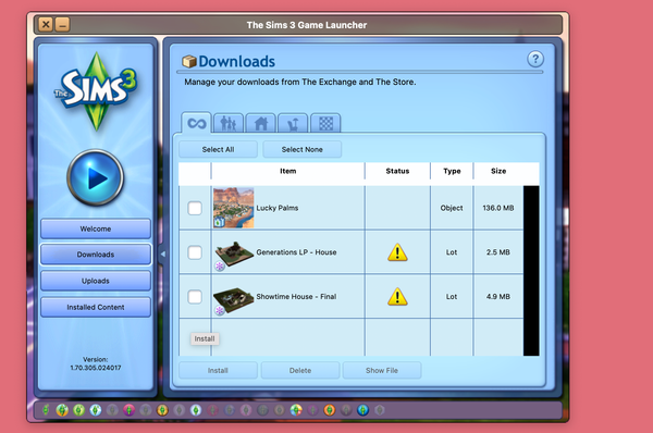 So I'm unable to download anything to my game, and I'm especially trying to download Lucky Palms. I have made a new sims 3 folder, deleted everything in the cache, and nothing works. When I click the install button, nothing happens and I'm unable to click any buttons. HELP!!!