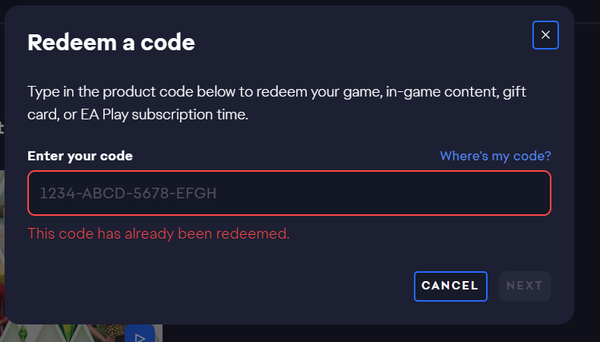 I redeemed a code I bought from EA on the EA platform, it told me it could not be redeemed there and linked the Sims 3 store. After following this URL the sims 3 store told me the code was already used and could not be redeemed there. The two other codes that I did not try in EA app only the sims 3 store worked fine being redeemed and installed as my accounts are linked. I do not know how to fix this issue as I just get told to ask the retailer for a new code but the retailer is EA itself.