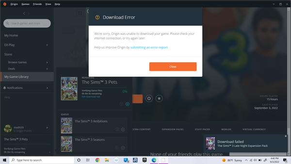 Origin won't download The sims 3
