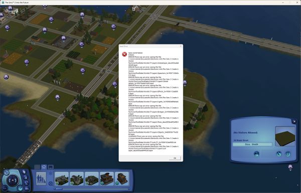I deleted only a big park in edit town mode. then tried to save the game. The screen got dark without saving plumbob icons and it took a few mins.
