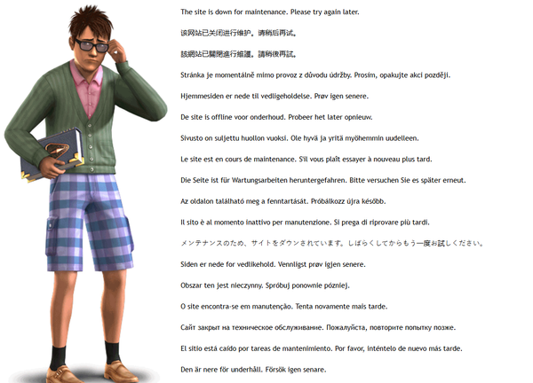 When I try to start my Sims 3 game, the launch screen is white with a puzzled looking sim and text in many languages saying the launcher is down for maintenance. I have been playing the Sims 3 for many years and have never seen this. Does anyone know why this has happened and if there is anything I can do about it?