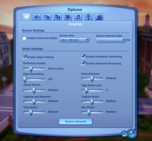 Recently, I have purchased a new laptop, and this laptop has a dedicated GPU, which I have selected for The Sims 3 to use as opposed to it's integrated one. Upon my entry of various worlds, I have graphics issues that I have never seen online, and would like to resolve. I have screenshots attached to this post.