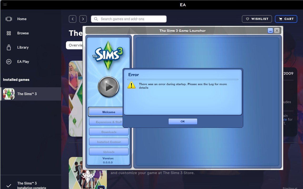 Full uninstall and reinstall of EA App and The Sims 3 (multiple times). Deleted all remaining folders (Program Files, Documents......). Used both C and D drives. Tried launching without expansion packs. I used the Alder Lake fix for newer CPUs (also failed). Registry cleanup via Regedit. Just launching the base game causes the same error... It still throws the same startup error every time. My PC is strong, I have enough space and all drivers are updated.