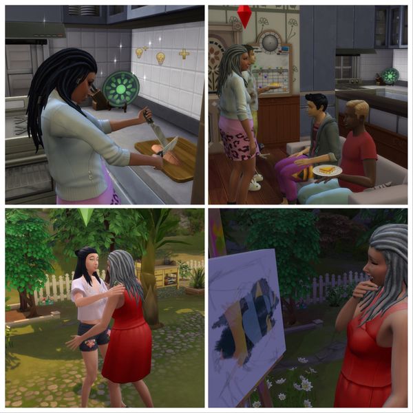 Das Haus ist ja noch nicht so toll eingerichtet. Bestimmt kann sie sich da auch selbst helfen. Und andere Sims interessieren sich vielleicht für die Sachen die sie da kreiert. Vielleicht...
