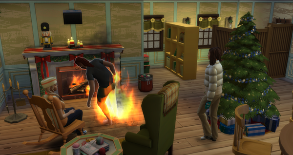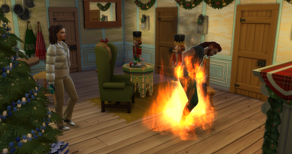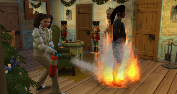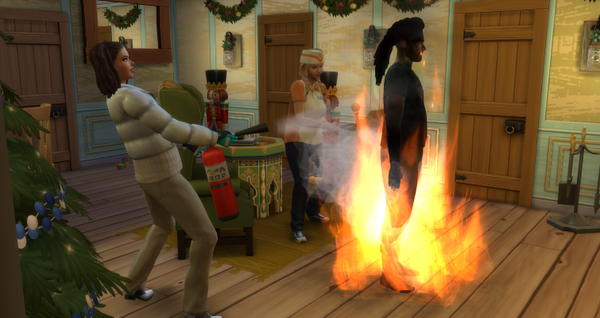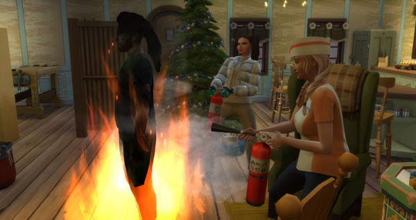 Oh, oh…moment mal…? Bin ich doch tatsächlich in meiner Träumerei etwas zu nah an den Kamin gekommen. Ähmmm… FEUER! Meine Freundin Mistle griff beherzt zu einem Feuerlöscher. So in Flammen, konnte sie mich nicht stehen sehen.