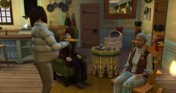 Später saß dann die kleine Familie? - wenn man das schon so nennen kann? Also Vater-Mutter und Kind zusammen vor dem Kamin. Mistle berichtet Patchy ausführlich von der Geburt.