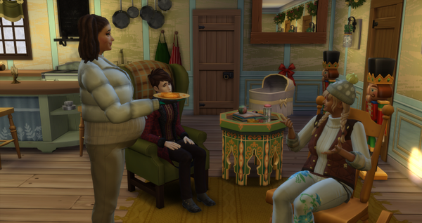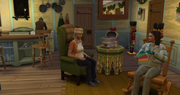 Mistle nahm gleich die Weihnachtsgeschenk-Produktion wieder auf. Vielleicht strickt sie auch schon ein paar Strampler und Kleinkinderkleidchen. Die Kleine hat sie dabei immer im Blick.