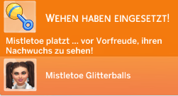 @Ripzha : Ja das hat tatsächlich so geklappt. Bin da in meinen Forschungen und Erkenntnissen aber auch schon weiter. Auch Mistle hätte das selbst anstoßen können, mit derselben Frage: Über Familienzuwachs reden. - da werden die Sims dann geschwängert, ohne dass man sie beim techeln beobachten kann. Mistle kann allerdings über die romantischen Aktionen auch normal mit Patch techlen und Baby machen. Alles inzwischen möglich, seit dem letzten Update. Allerdings ist da wirklich Vorsicht geboten, wer noch keine Kinder möchte und aus Versehen (z.B.auf einem Date) mit seinem romantischen Interessierten Partner über Familienzuwachs reden anklickt.... wird dann auch geschwängert/bzw macht ein Baby (auch wenn die Sims noch gar nicht zusammen wohnen).