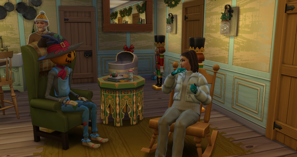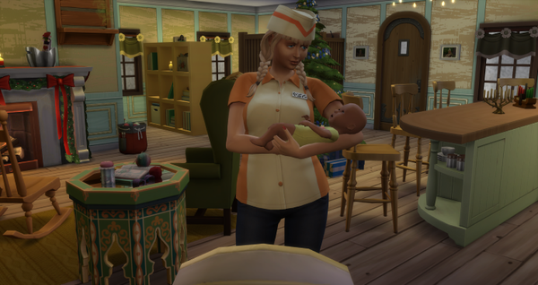 Ich als unerfahrener Mann in solchen Dingen, hab mich diskret zurückgezogen. Pepper war ja in der Nähe und würde, falls doch Hilfe notwendig werden sollte, gewissenhaft danach handeln. Und nach vielem stöhnen hörte man dann endlich ein Schrei von einem kleinen Simsbaby. Wie wohl das Baby bei diesem Vater aussehen wird? Ob es auch einen Kürbiskopf hat?