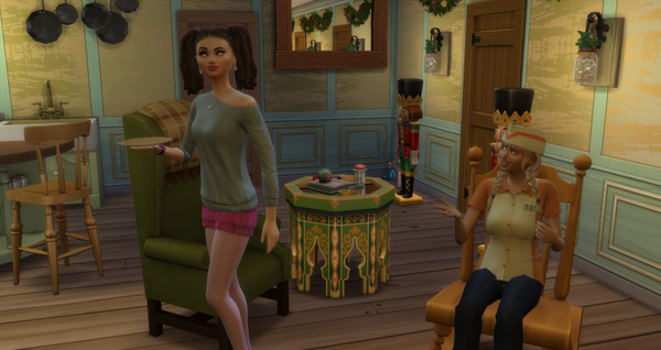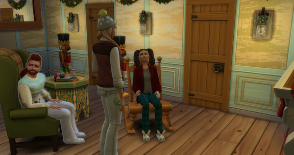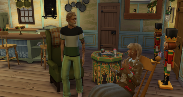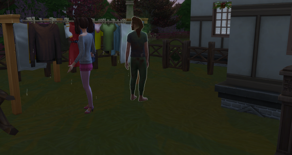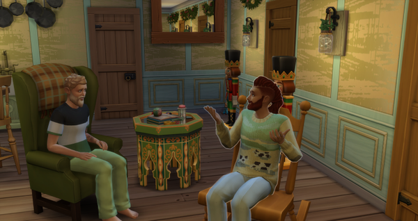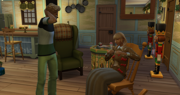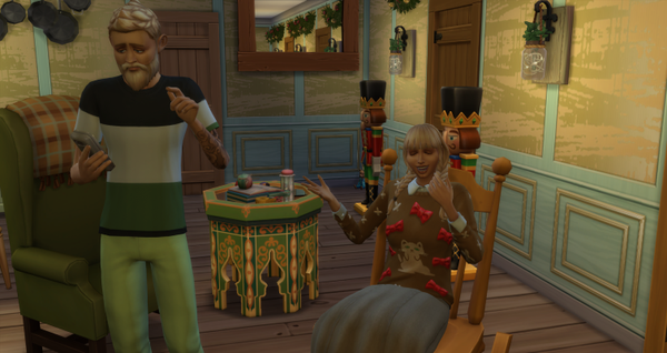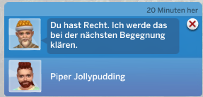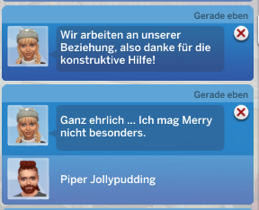 Ich sah meine Partyabende davon fliegen. Etwas resigniert lehnte ich mich im Schaukelstuhl zurück. Laaaaannngweilig! Kein Wunder fliegen hier die Fetzen zwischen den beiden. So war wenigstens etwas hier los, wenn auch nicht das, was ich mir vorstellte. Mistle versuchte es wieder mit verdeckter Gesprächstherapie bei Peper. Aber die war scheinbar so froh, darüber, dass wenigstens ein Sim mit ihr versucht normal zu reden.